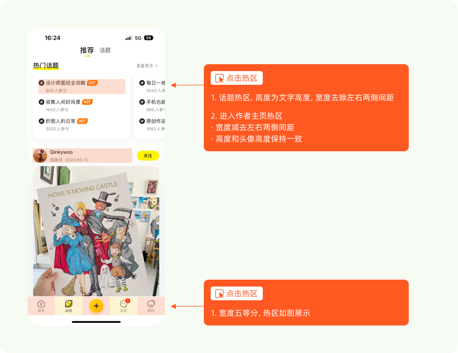 點(diǎn)擊熱區(qū)是指用戶在界面上最容易點(diǎn)擊的區(qū)域。可以標(biāo)注出點(diǎn)擊熱區(qū)的位置、大小和形狀,以便團(tuán)隊(duì)成員在實(shí)現(xiàn)交互時(shí)更好地考慮用戶體驗(yàn)和操作習(xí)慣。