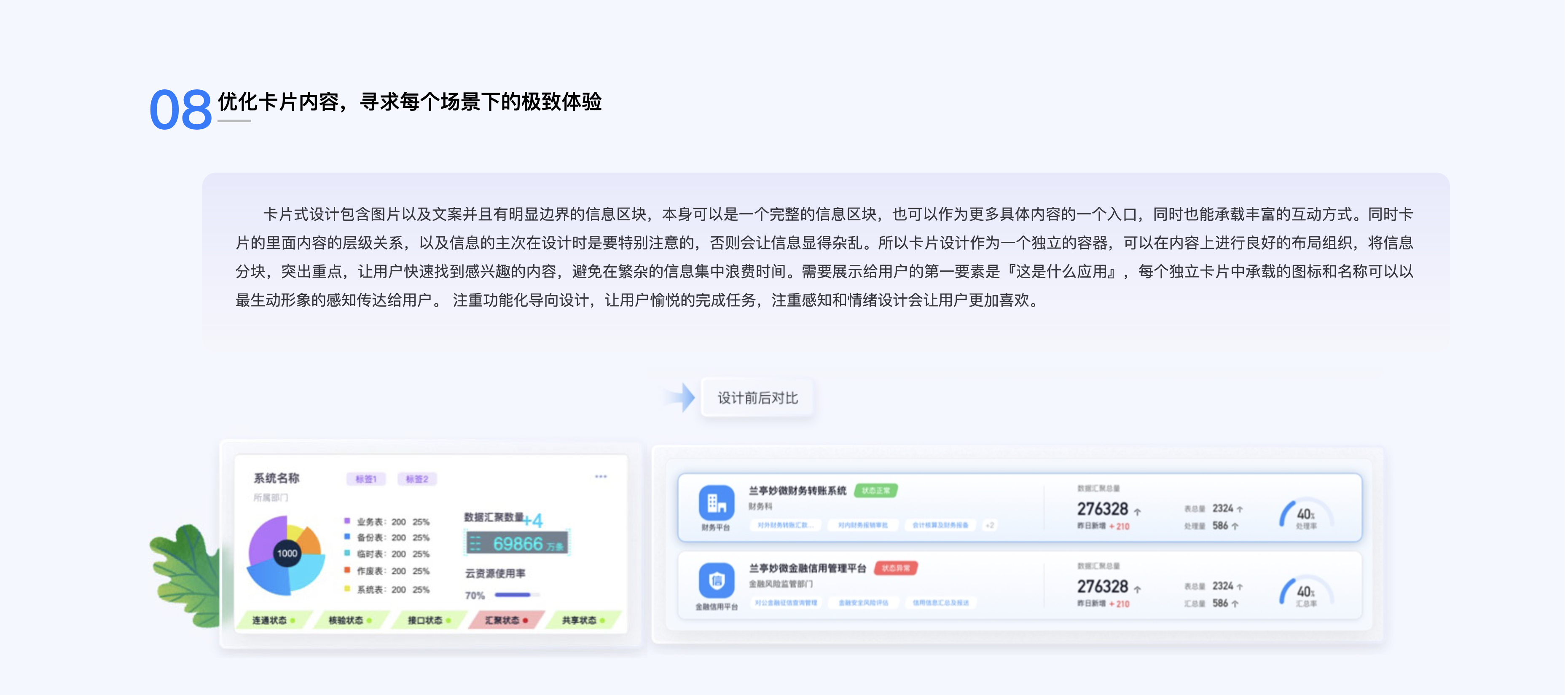 總之,金融行業可視化 UI 設計是一個復雜而又關鍵的領域。只有將安全與美觀完美融合,才能滿足用戶對金融服務的高要求,增強用戶對金融平臺的信任和忠誠度,推動金融行業在數字化時代的持續發展。