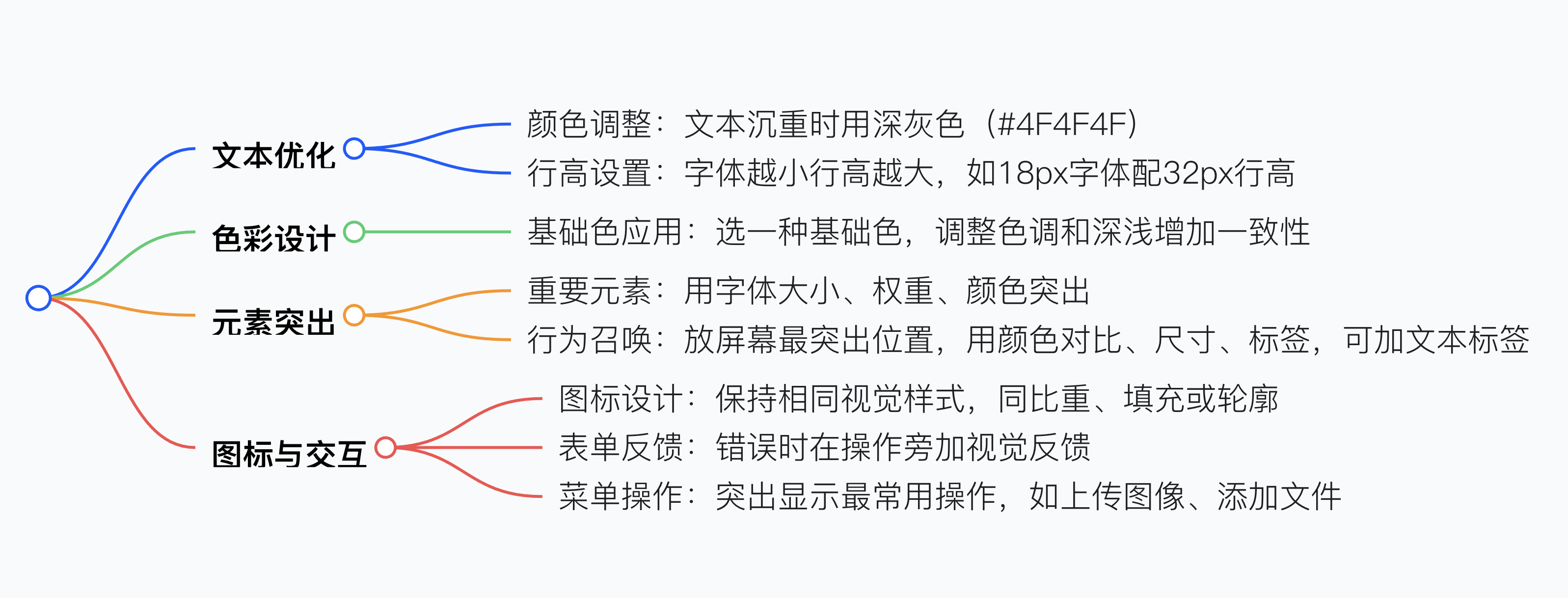8 個易于實踐的 UI 設計技巧,包括若文本沉重可將顏色改為深灰色(如 #4F4F4F)以提升可讀性,字體越小時行高應越大(如 18px 字體搭配 32px 行高),選擇一種基礎色并通過調整色調和深淺增加設計一致性,結合字體大小、權重和顏色突出 UI 中最重要元素,確保圖標具有相同視覺樣式(如相同比重、填充或輪廓),將 “行為召喚” 放在屏幕最突出位置(可結合顏色對比和文本標簽),為表單錯誤添加額外視覺反饋(在操作旁顯示錯誤信息),以及突出顯示菜單中最常用操作(如上傳圖像、添加文件),這些技巧可通過簡單調整改善 UI 設計。