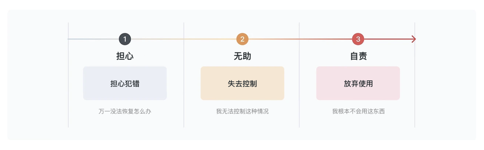 而不管是哪種錯誤,都會觸發用戶的負面情緒:擔心 “刪錯的文件找不回來”(恐懼)、覺得 “我怎么連這個都不會用”(自責)、面對錯誤提示不知道下一步該做(無助)。最可怕的是 “自責”—— 當用戶把錯誤歸咎于自己,壓力會越來越大,最后干脆關掉 APP,再也不回來。