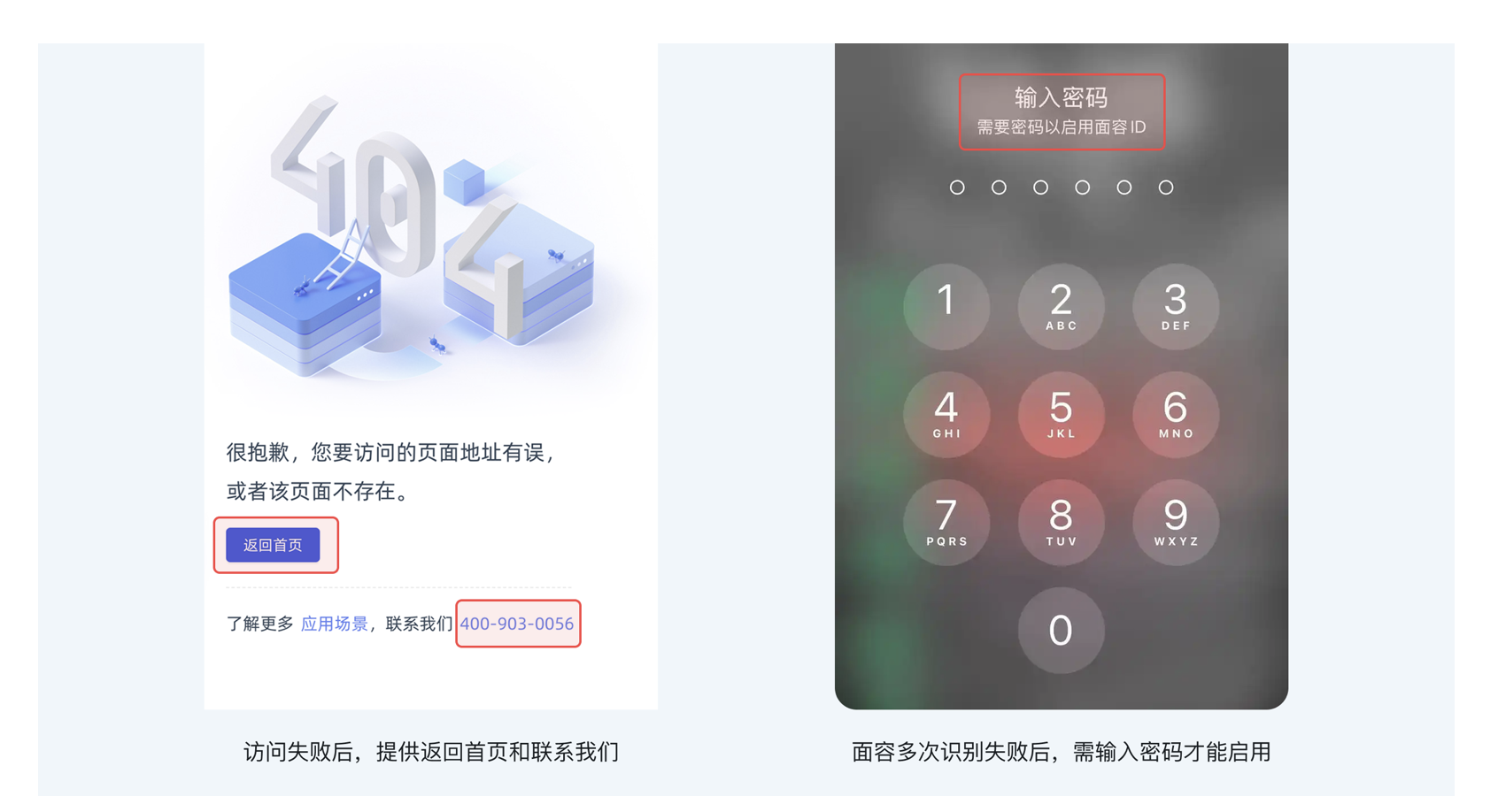 更貼心的設計:比如 Face ID 連續識別失敗后,系統會提示 “面容 ID 已鎖定,請輸入密碼解鎖”,并直接彈出密碼輸入框;支付時余額不足,會提示 “余額不足,是否使用微信支付?”,并一鍵跳轉微信支付頁面 —— 不讓用戶 “卡在錯誤頁面不知所措”,就是在幫用戶快速回到正確的流程里。