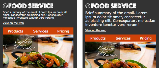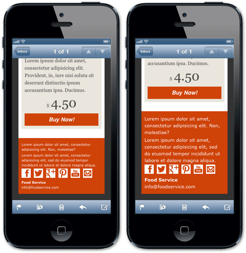 嚴禁復(fù)雜 —— 尤其是在郵件上。始終避免使用復(fù)雜的結(jié)構(gòu),否則在小屏幕上渲染時一定會失敗。請記住許多設(shè)備是不支持媒體查詢的(例如谷歌郵件),所以我們不能指望成熟的內(nèi)容重排技術(shù)。
