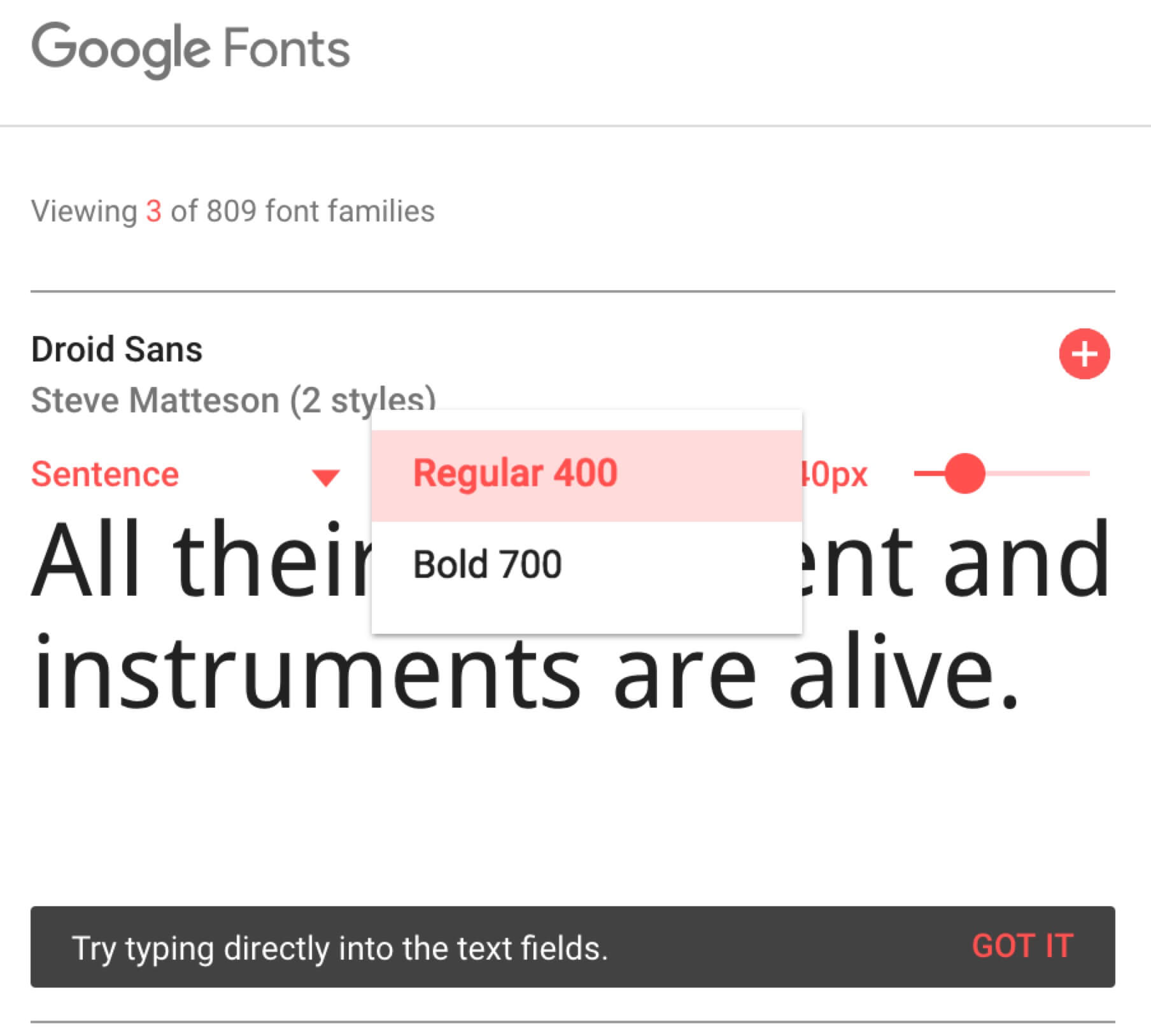 根據Google Fonts API – Droid Sans提供的Droid Sans字體,我們可以知道該字體擁有兩種字重。