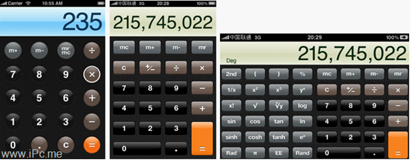 iPhone游戲里出現(xiàn)橫豎屏設(shè)計(jì)比較正常,都是視具體的游戲類型來(lái)分。但一般的效率型應(yīng)用或?qū)嵱霉ぞ?,也是橫豎屏都有。林子大了,什么鳥(niǎo)都有,有 些用戶就是喜歡經(jīng)常將屏幕旋轉(zhuǎn)過(guò)來(lái),而且還不在少數(shù)。他們或是喜歡橫屏的瀏覽方式(如備忘錄、音樂(lè)),或是希望打橫可以看到更多的信息(如計(jì)算器)。設(shè)計(jì) 的時(shí)候必須充分考慮用戶的期望。有時(shí)將界面內(nèi)容旋轉(zhuǎn)就可以簡(jiǎn)單滿足他們的需求,但有時(shí)也需要你重新去設(shè)計(jì)以展示更多的內(nèi)容(如橫屏的音樂(lè)會(huì)出現(xiàn)一個(gè)新的界 面,展示所有的歌曲)。