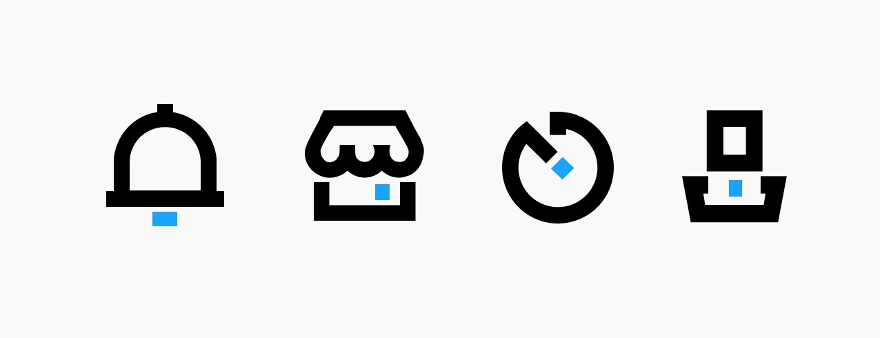 高識別度的剪影圖形會讓整體看起來非常醒目,提高信息傳播的效率,只要控制好造型,即便把圖標縮到很小也能清晰辨認。