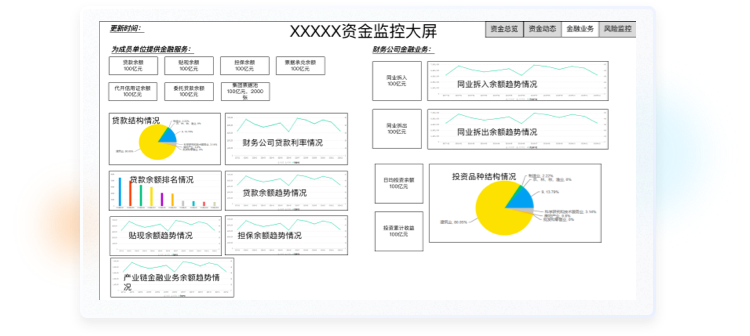 右側(cè)是客戶給的原型,只是把要展示的數(shù)據(jù)簡單羅列了一下。考慮到大屏應(yīng)用場景,比如公司會議,集團(tuán)視察,行業(yè)參觀等,都是宏觀數(shù)據(jù)展示為主。所以在設(shè)計(jì)時(shí)不僅要考慮美觀性,更要考慮到整體的交互布局以及交互方式,確保關(guān)鍵數(shù)據(jù)和指標(biāo)在界面上以醒目的方式呈現(xiàn),以便用戶快速識別和理解。設(shè)計(jì)清晰簡潔的布局,避免信息過載,使用戶能夠輕松找到需要的信息。